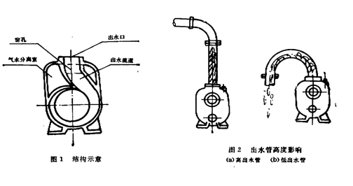 2.泵出口與泵體流道不相通且流線轉(zhuǎn)彎的自吸泵,出水高度對(duì)白吸性能一般無影響。