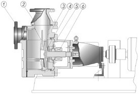 (4)松開機(jī)械密封動(dòng)環(huán)固定螺釘,用錘輕擊連軸器中心吊緊螺栓,使葉輪軸與泵軸莫氏錐度松動(dòng)后拉出葉輪、后蓋、密封件動(dòng)環(huán),松開后蓋上壓蓋螺釘,取出靜環(huán).