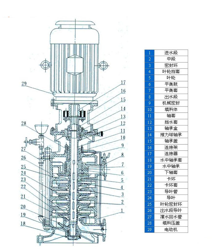 (注意:DLR型立式單吸多級(jí)離心泵型號(hào)的水泵配件實(shí)物圖和此圖存在外觀、大小、尺寸、材質(zhì)等的區(qū)別)