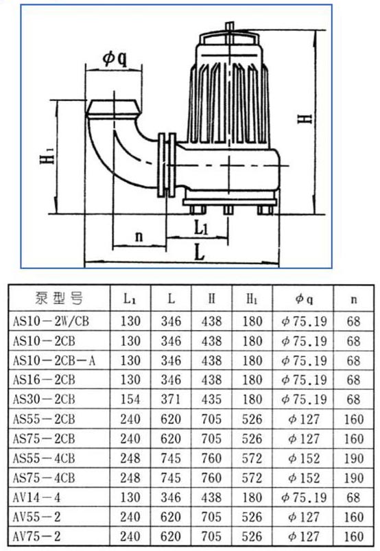 AS、AV型撕裂式潛水排污泵外形尺寸