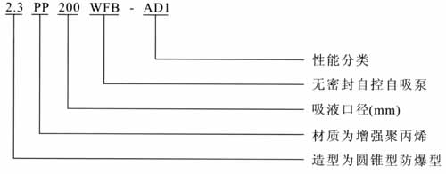 ■ WFB無密封自控自吸泵選型說明: ● WFB型節(jié)能無密封自控自吸泵性能參數(shù)表中“類別代碼”欄的1-7的含義:1型化工泵為長方型,2型圓錐型,3型化工泵為防爆型,4型離心泵為戶外型,5型為推車移動型,6型為防凍型,7型化工泵為多級型;材質(zhì)代號欄中 T、G、PP、BXG四組字母分別代表:鐵、鋼(碳鋼、耐磨鋼:JM3、JM6)、增強(qiáng)聚丙烯、不銹鋼(321、304、316、316 L)四種材質(zhì)?!?WFB型節(jié)能無密封自控自吸泵法蘭標(biāo)準(zhǔn)代號;為GB 91152-2000;GB 9115.3.2000,非金屬材質(zhì)自吸泵的法蘭壓力為0.6 MPa;金屬材質(zhì)離心泵的法蘭壓力為1.0MP a;特殊規(guī)格水泵的法蘭壓力為1.6MPa。